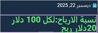 نسبة الارباح:لكل 100 دلار 20دلار ربح