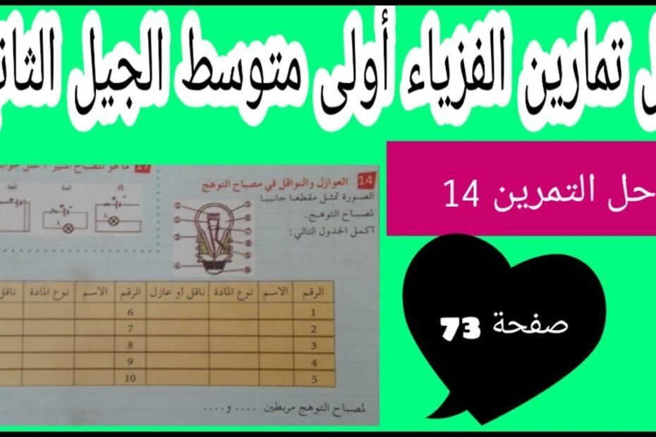 حل التمرين 14 صفحة 73 فزياء أول متوسط الجيل الثاني تسمية مكونات مصباح التوهج