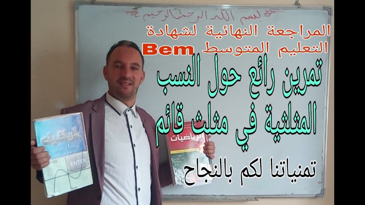النسب المثلثية في مثلث قائم و البرهان مثال رائع جدا جدا المراجعة النهائية رابعة متوسط زكرياء