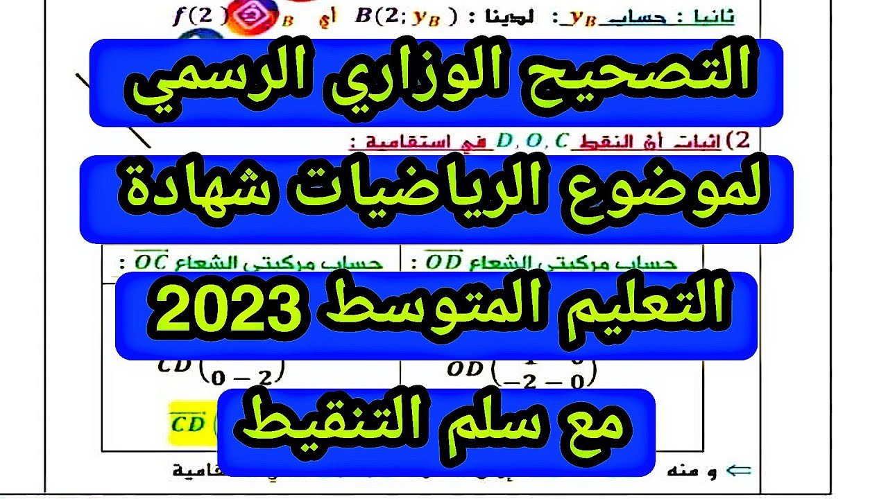 التصحيح الوزاري الرسمي لموضوع الرياضيات شهادة التعليم المتوسط 2023 شحال النقطة