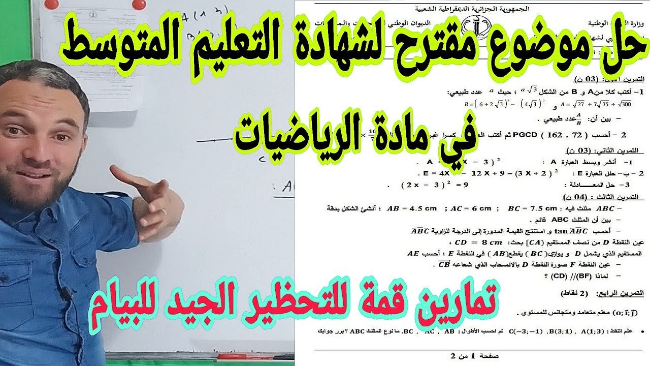 حل إختبار تجريبي لشهادة التعليم المتوسط في مادة الرياضيات شامل لجميع الأسئلة @Ch_zaki_constantine