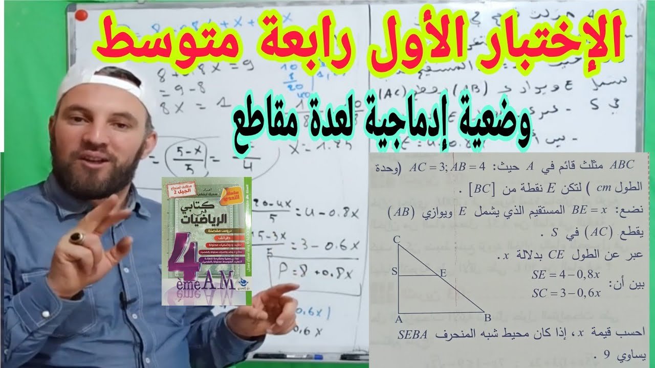 الاختبار الأول مراجعة شاملة وضعية إدماجية شاملة للمعادلات وطالس وفيثاورث رابعة متوسط