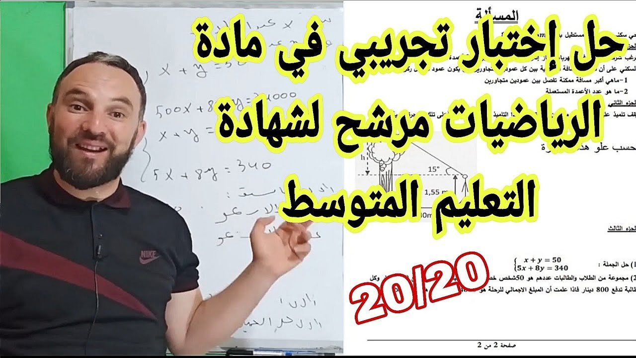 حل إختبار تجريبي لشهادة التعليم المتوسط في مادة الرياضيات مراجعة جميع الدروس