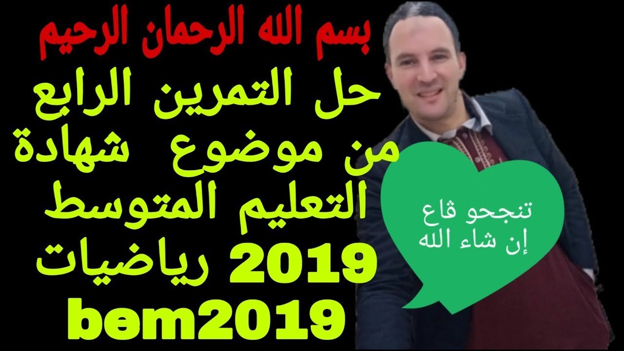 حل التمرين الرابع (4) شهادة التعليم المتوسط 2019 bem2019 رياضيات زكرياء