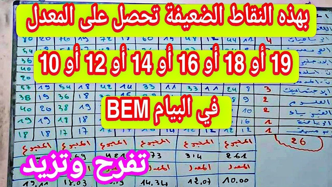بهذه النقاط الضعيفة تحصل على المعدل 19 أو 18 أو 16 أو 14 أو 12 أو 10 في شهادة التعليم المتوسط bem