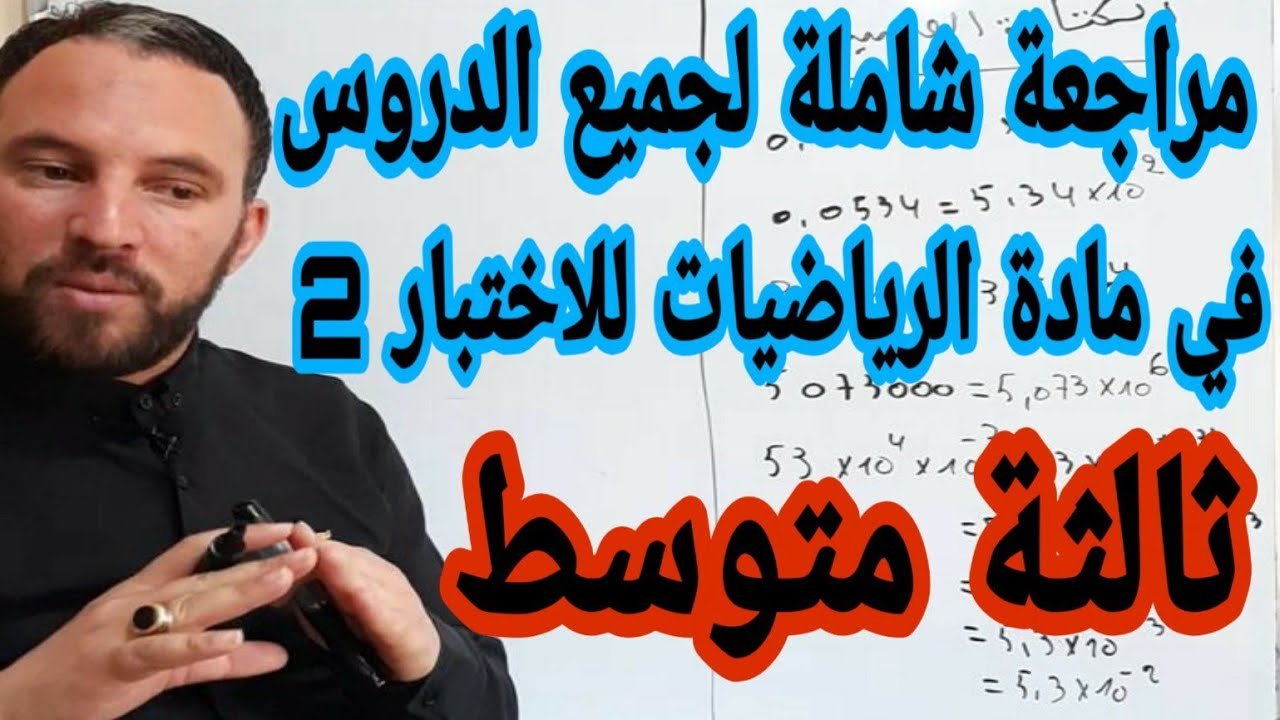 مراجعة شاملة للاختبار الثاني في مادة الرياضيات ثالثة متوسط الجيل الثاني