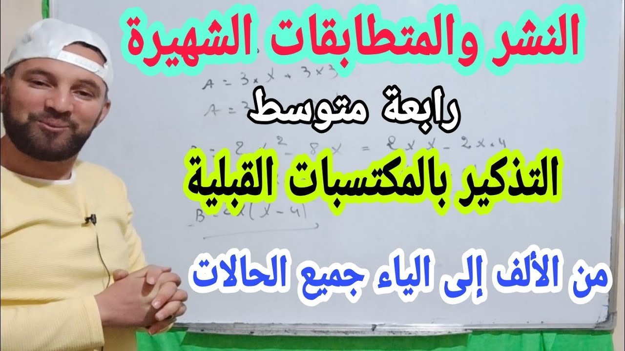 النشر و المتطابقات الشهيرة بالتفصيل للسنة الرابعة متوسط من الألف إلى الياء مع امثلة تطبيقية شاملة