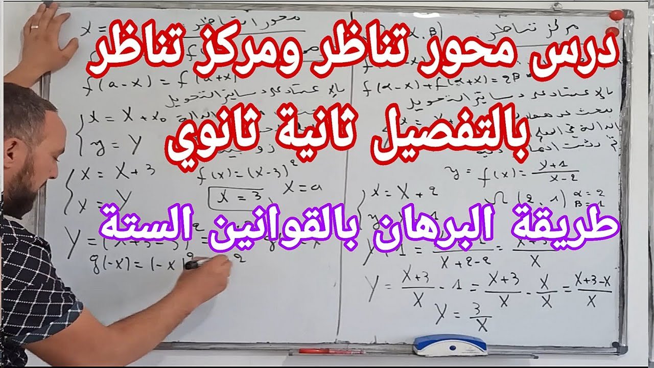 درس مركز تناظر ومحور تناظر مع البراهين عليها في جميع الحالات ثانية ثانوي