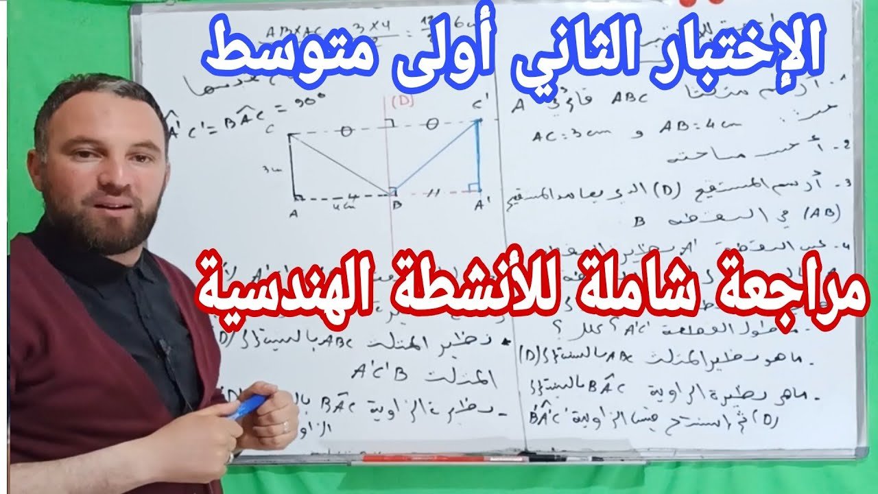 مراجعة شاملة لدروس الأنشطة الهندسية أولى متوسط التناظر المحوري وخواصه