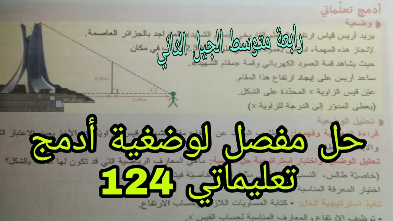 حل أدمج تعليماتي صفحة 124 النسب المثلثية رياضيات رابعة متوسط الجيل الثاني