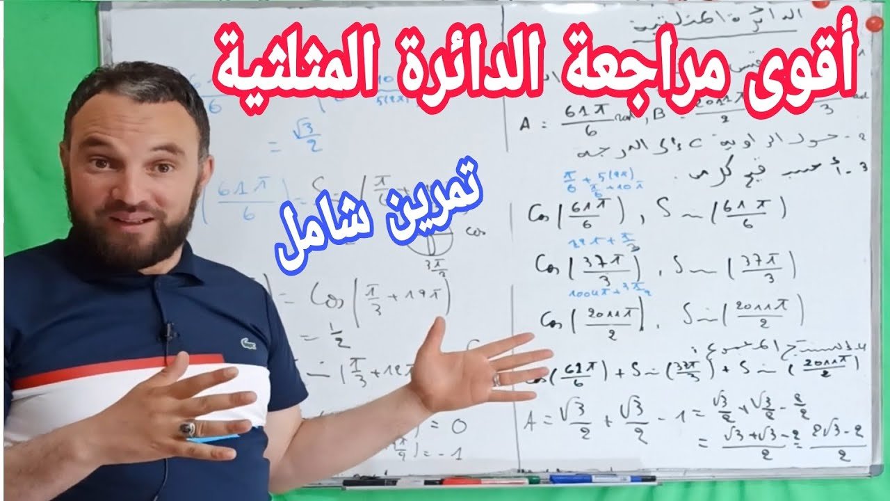 مراجعة الاختبار الثاني الدائرة المثلثية تمرين شامل للسنة الأولى ثانوي