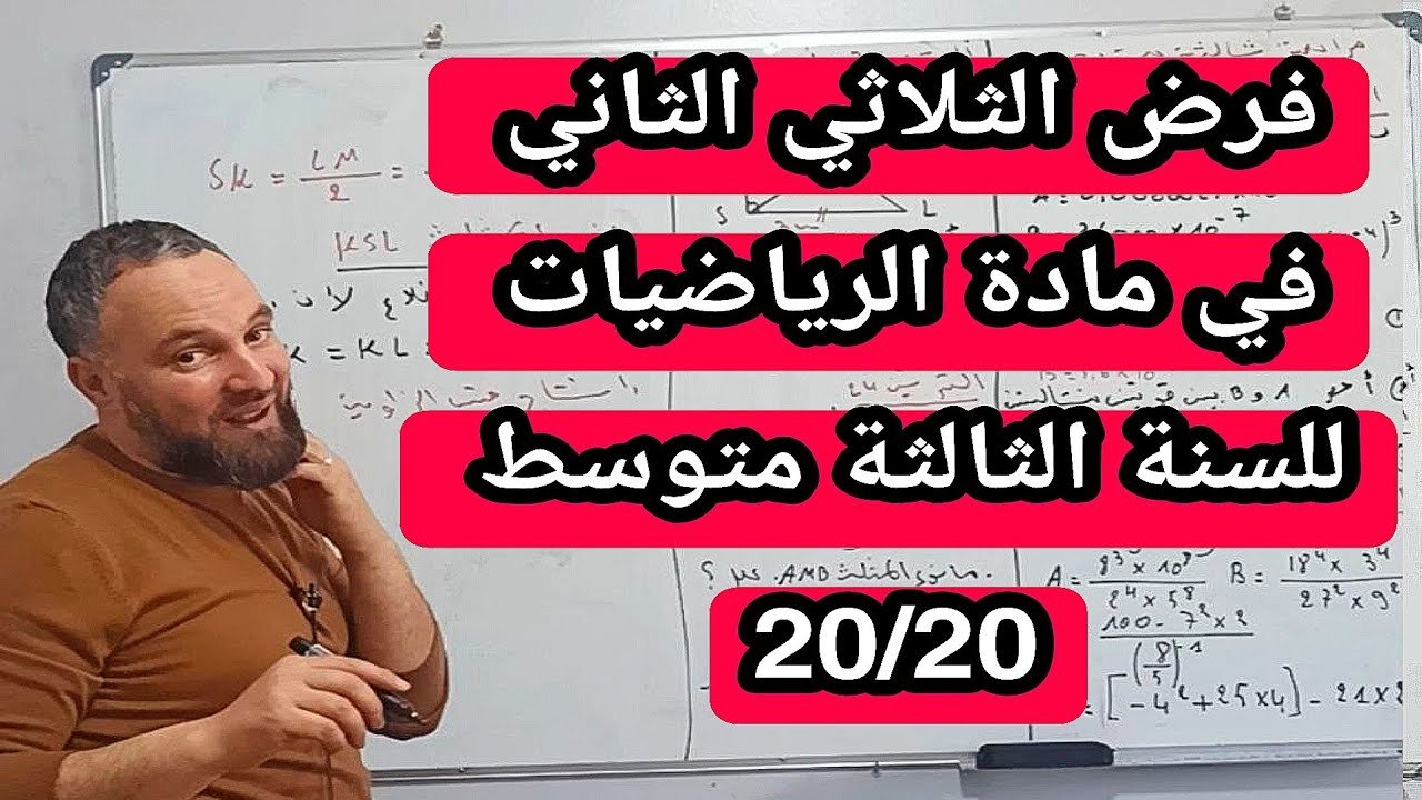 فرض الثلاثي الثاني في مادة الرياضيات للسنة الثالثة متوسط 20/20