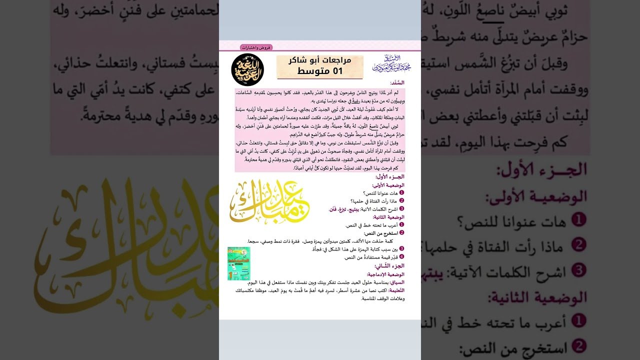 01 متوسط مراجعة لفرض الفصل الثالث في اللغة العربية
