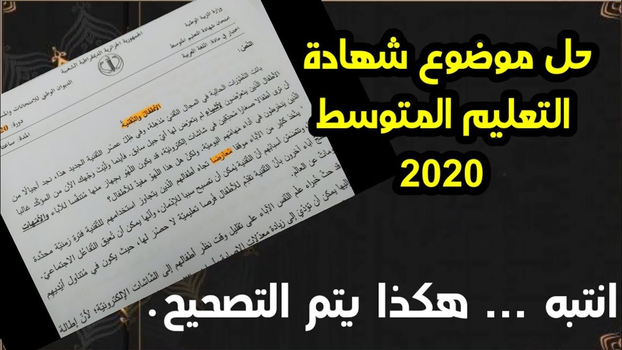 حل اختبار اللغة العربية شهادة التعليم المتوسط 2020 /هكذا تصحّح ورقتك /محمد أبوشاكر لعبودي
