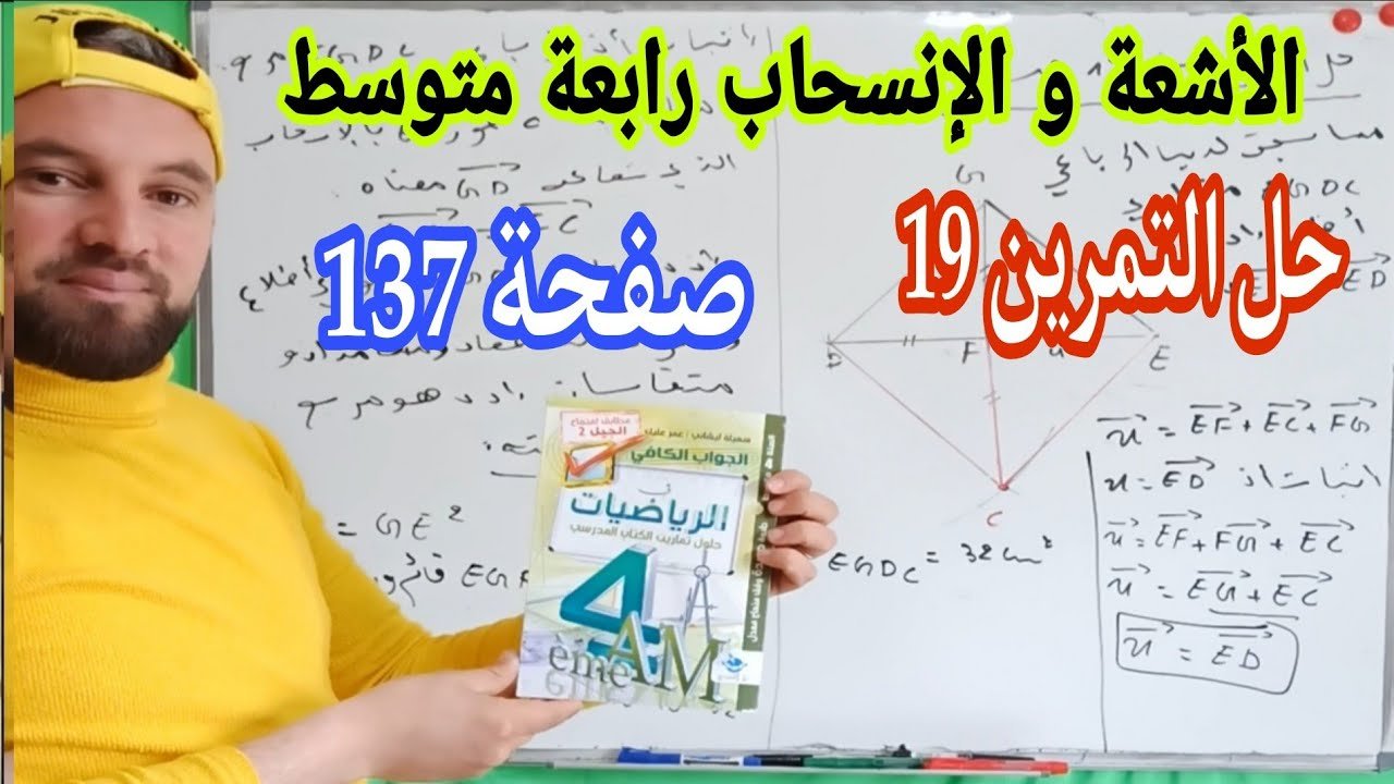 حل التمرين 19 صفحة 137 مقطع الأشعة والانسحاب رابعة متوسط طرح في امتحان شهادة التعليم المتوسط سابقا