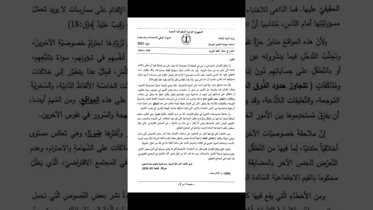 هذا موضوع اللغة العربية في شهادة التعليم المتوسط #بيام2021