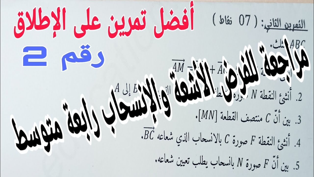 مراجعة للفرض الأول والاختبار تمرين شامل حول الاشعة والانسحاب رابعة متوسط الجيل الثاني رقم 2