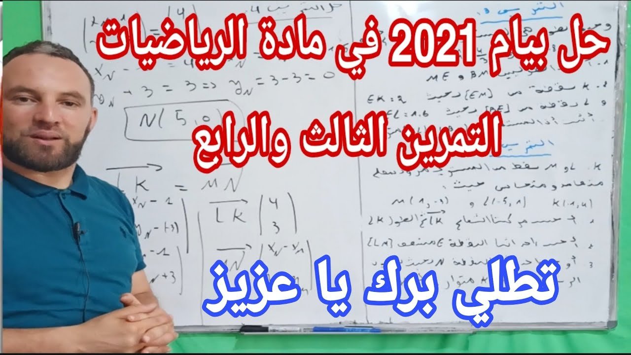 حل بيام 2021 في مادة الرياضيات التمرين الثالث والرابع
