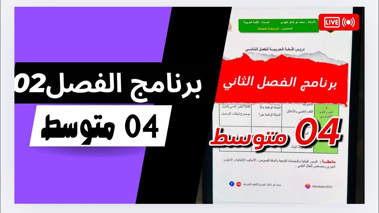 برنامج دروس الفصل الثاني #04متوسط محمد أبو شاكر لعبودي للتعليم المتوسّط