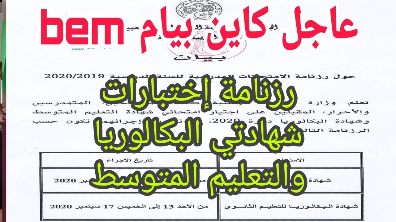عاجل عاجل كاين بيام مع الأسف رزنامة إختبارات شهادة التعليم المتوسط والبكالوريا 2020