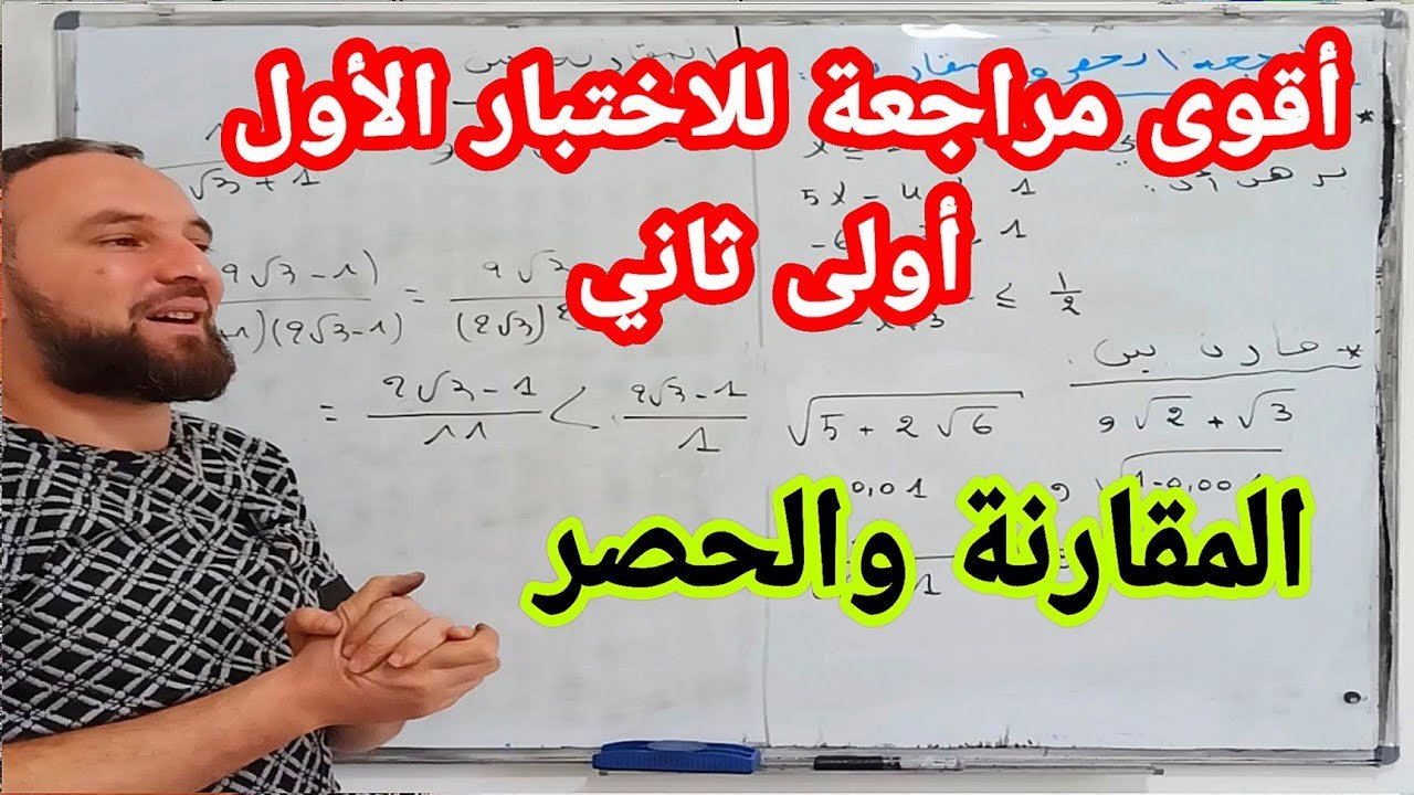 أقوى مراجعة للاختبار الأول في مادة الرياضيات المقارنة والحصر أولى ثانوي