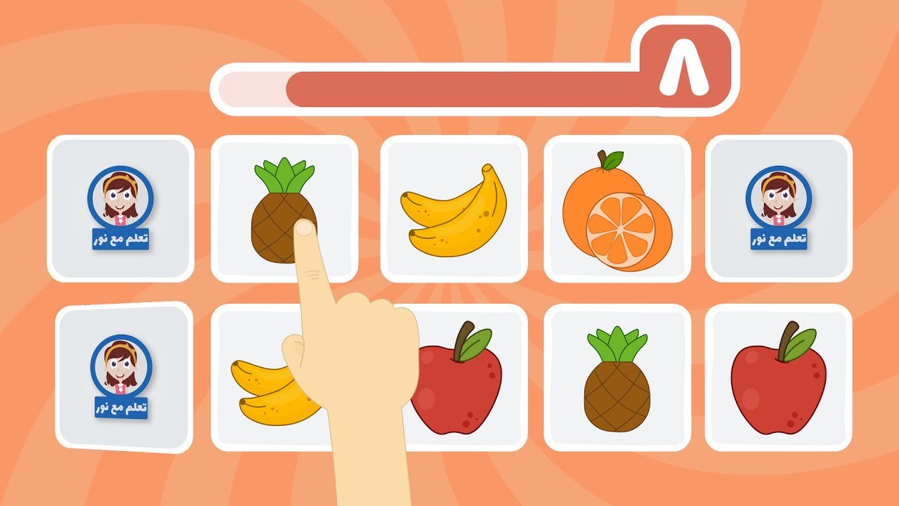تعلم مع نور اسماء الفواكه | تعليم اسماء الفواكه | لعبة الذاكرة للاطفال