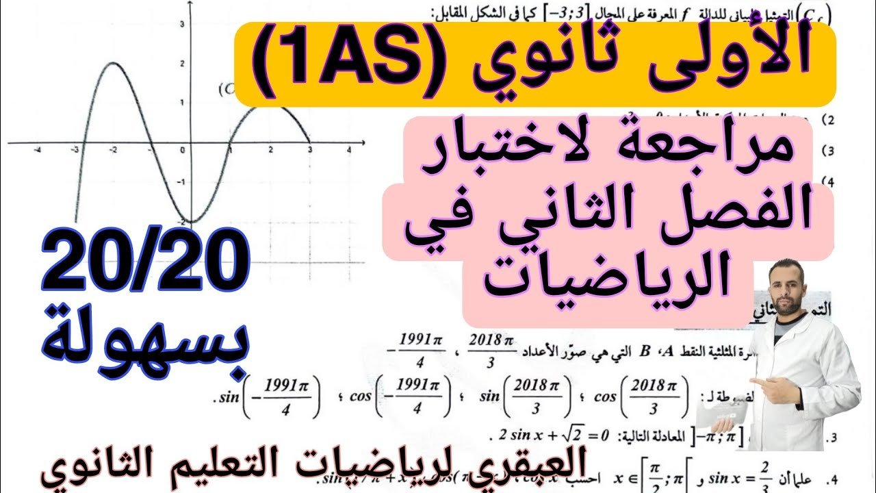الأولى ثانوي ج م ع مراجعة لاختبار الفصل الثاني في الرياضيات