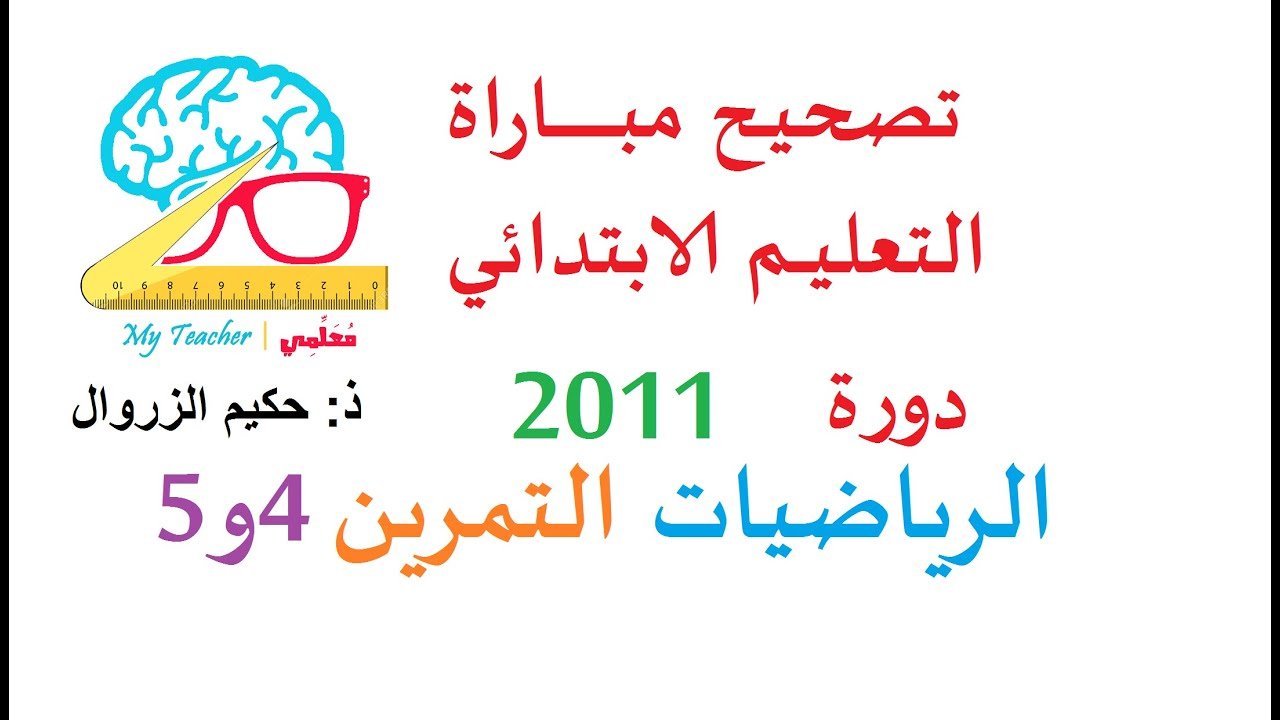 تصحيح مباراة التعليم الابتدائي دورة 2011 مادة الرياضيات التمرين 4و5