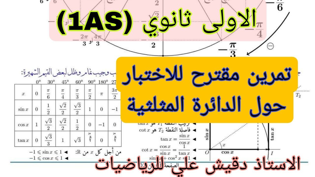 تمرين مقترح للاختبار حول الحساب على cos و sin