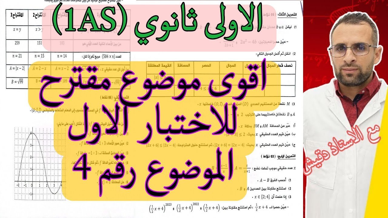 الاولى ثانوي اقوى موضوع مقترح للاختبار الاول