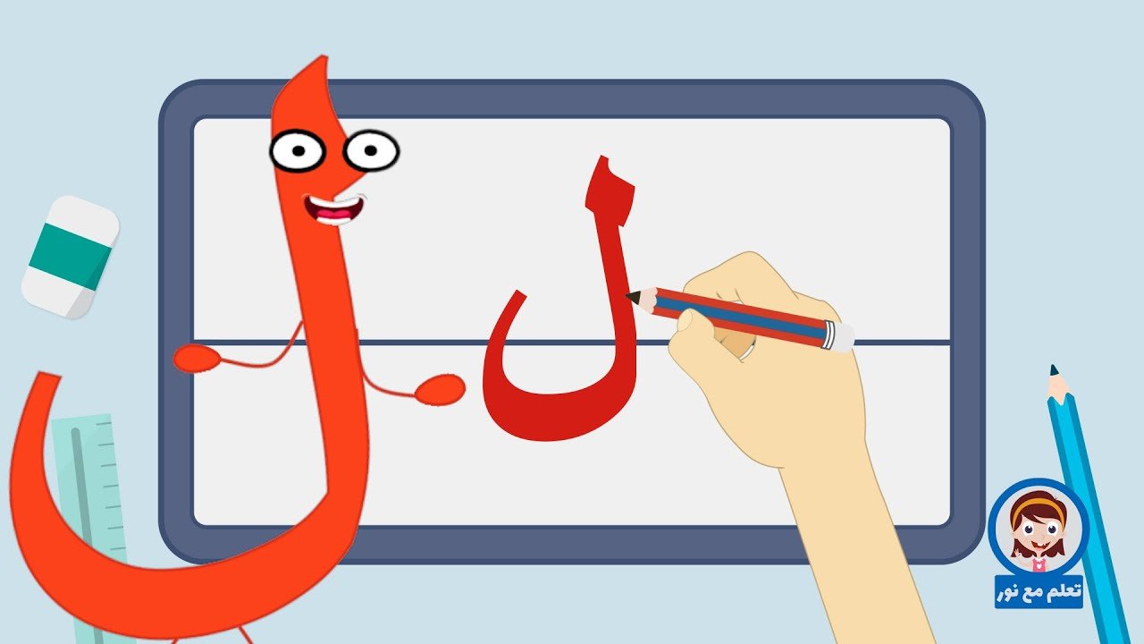 تعليم كتابة الحروف العربية | تعلم مع نور | كتابة حرف اللام | ل