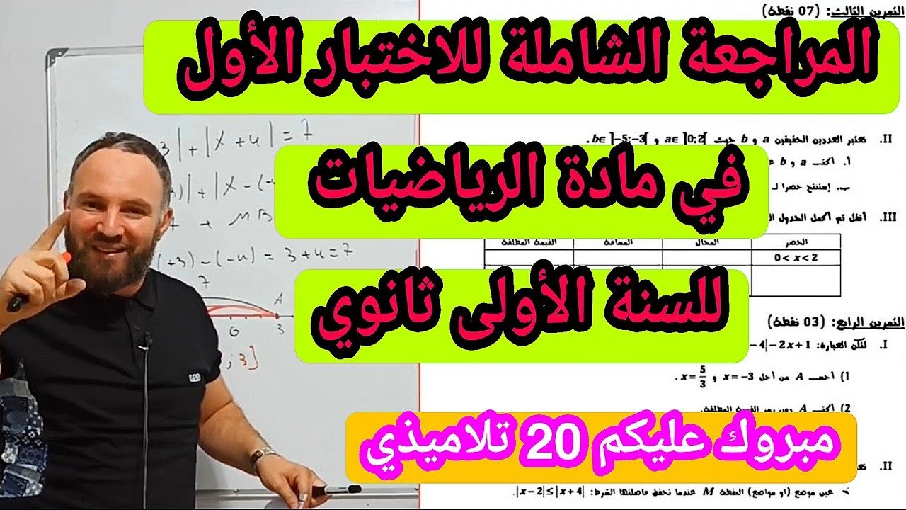 أقوى مراجعة للاختبار الثاني في مادة الرياضيات للسنة الأولى ثانوي جذع مشترك آداب 20/20