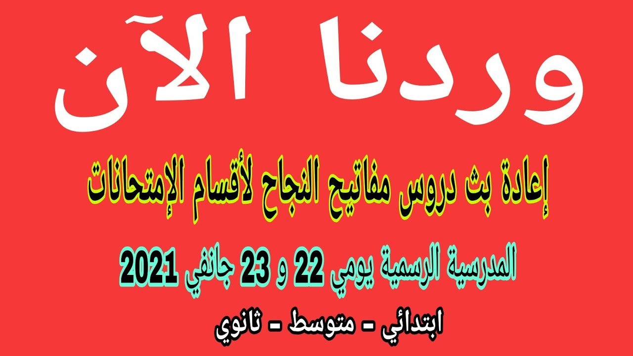 عاجل إعادة بث دروس مفاتيح النجاح لأقسام الإمتحانات المدرسية الرسمية يومي 22 و 23 جانفي 2021