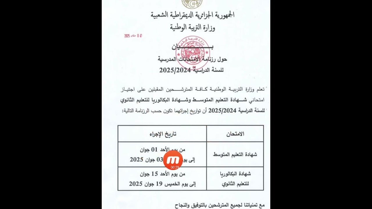 عاجل موعد إجراء امتحان شهادة التعليم المتوسط و شهادة البكالوريا 2025