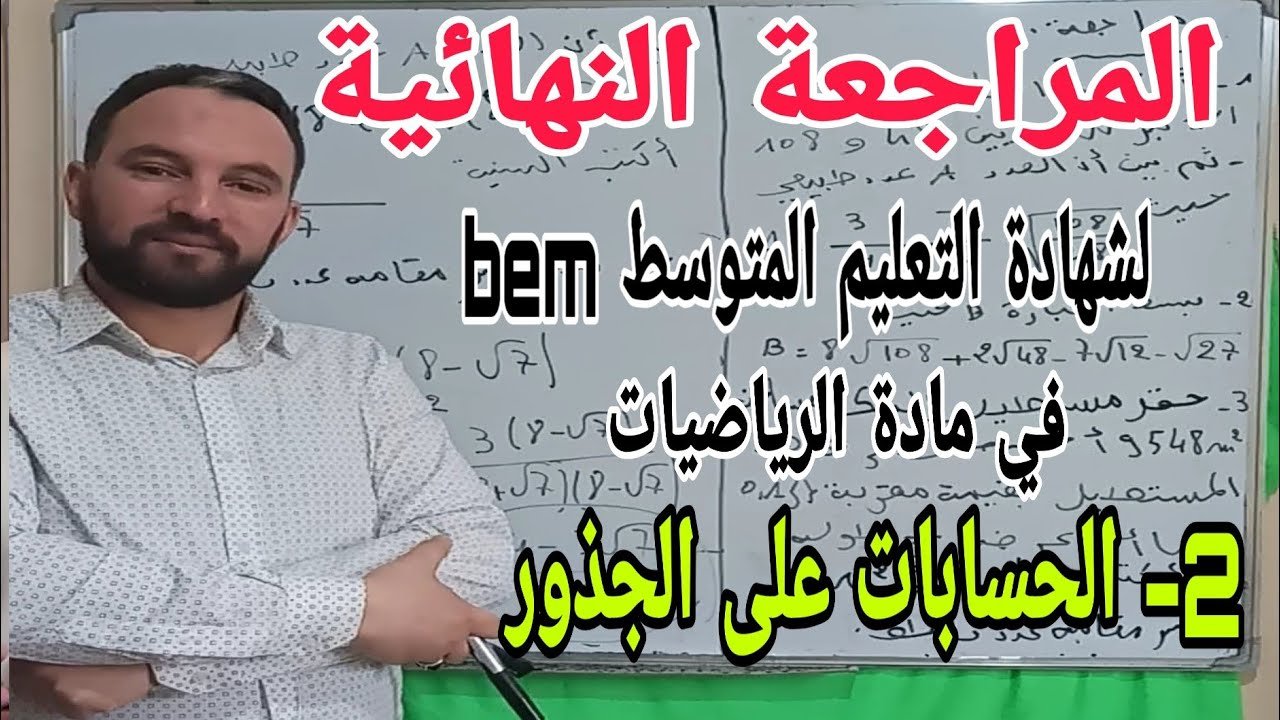 المراجعة النهائية لشهادة التعليم المتوسط bem في مادة الرياضيات المقطع الثاني الحسابات على الجذور